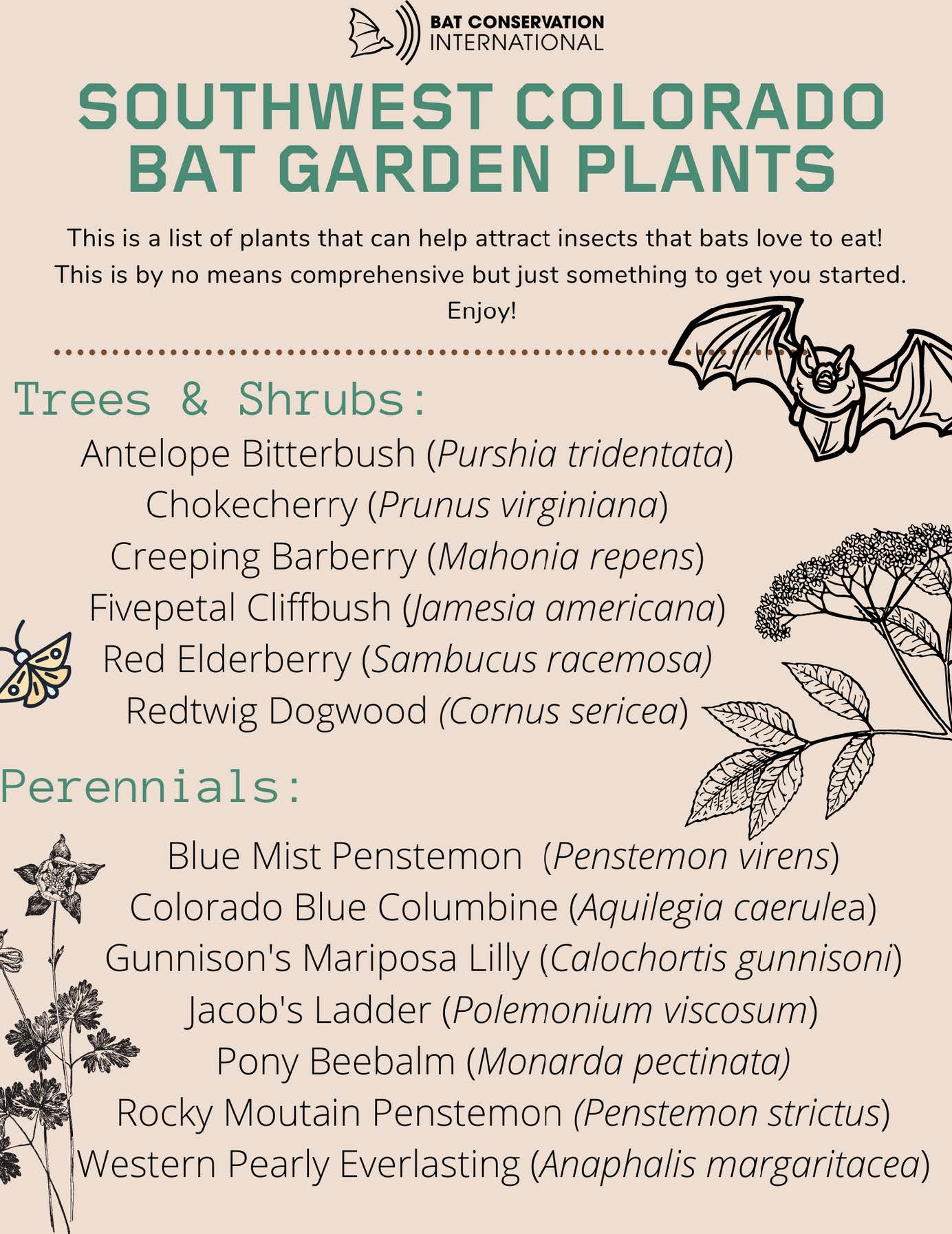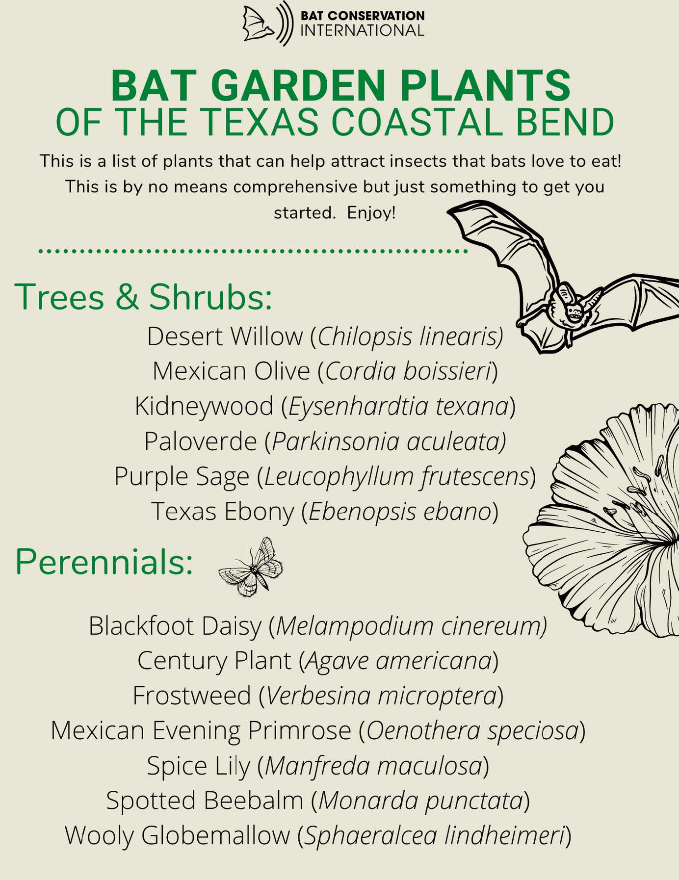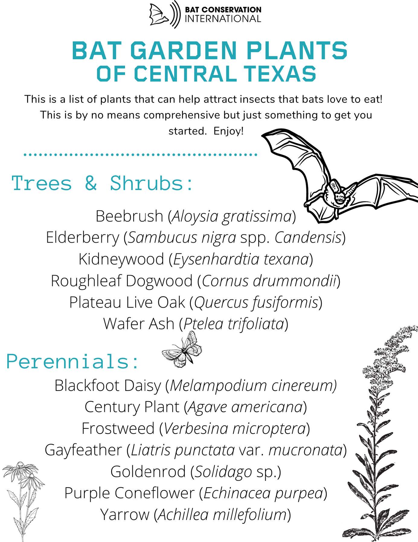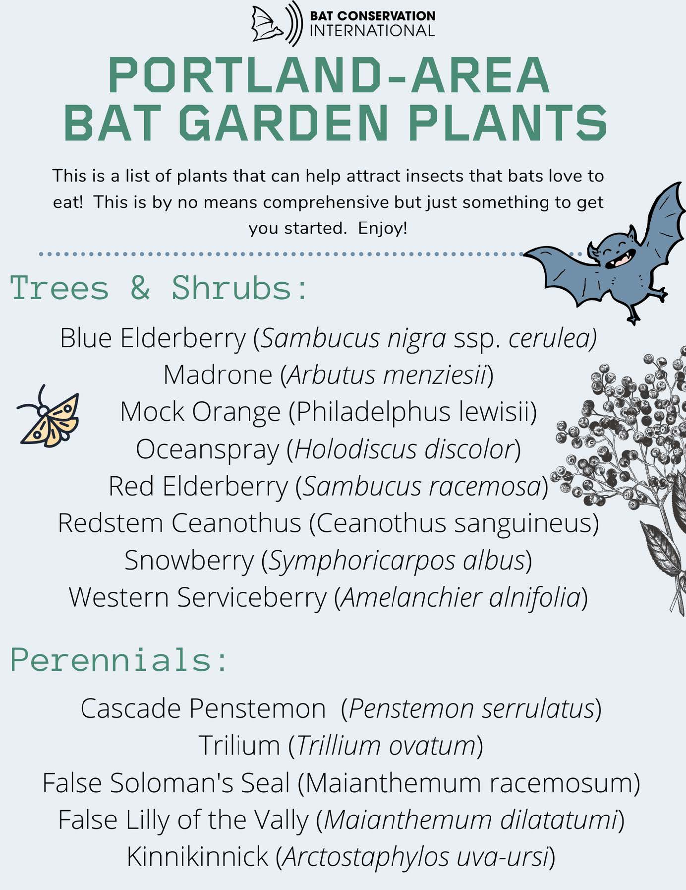Check out our Guide to Gardening for Bats and lists of regional native plants: